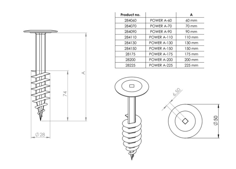 Rekomenduojamas tvirtinimo elemento storis pagal smeigės ilgį: