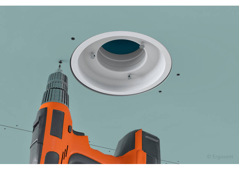 Difuzorius tvirtinamas savisriegiais varžteliais tiesiai prie gipso plokštės. Tvirtinimo elementai reguliuojami ir akimirksniu pritaikomi 1 ar 2 gipso sluoksniams (prireikus ir bet kokiam nestandartiniam storiui).