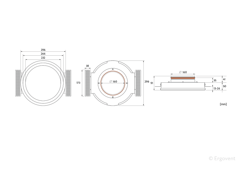 ERGOVENT difuzoriaus gipsinis korpusas yra tvirtas ir vienalytis. Tvirtinimo elementai įlieti į korpusą, niekas negręžiama ir niekas prie jo neklijuojama. Liejimo metu pašalinami menkiausi oro burbuliukai, gipso paviršius lygus ir baltas kaip sniegas.