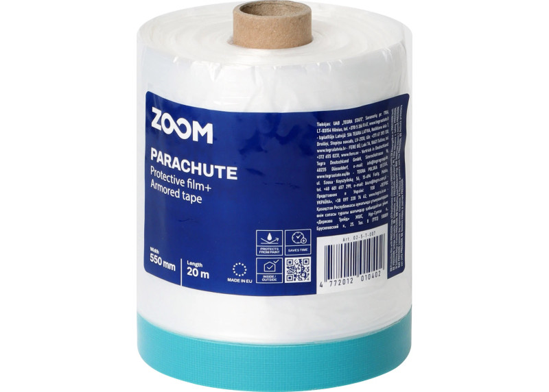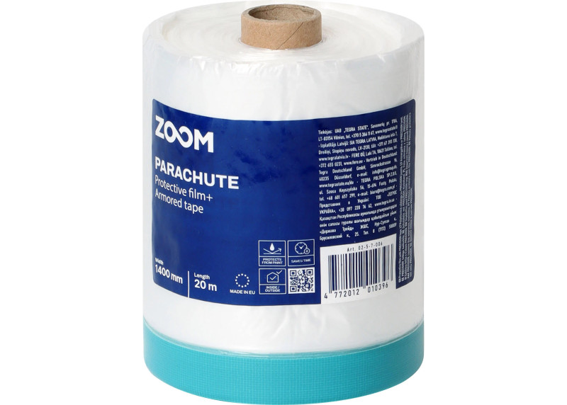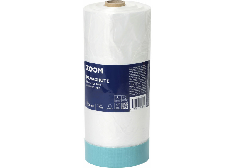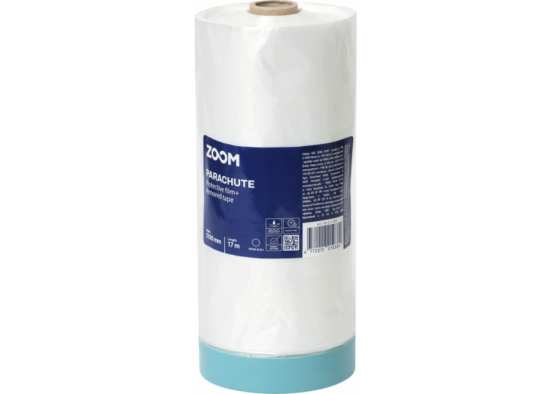 ZOOM polietileninė uždanga su lipnia armuota juosta – tai praktiška ir laiką taupanti „du viename“ maskavimo sistema, skirta labai didelių paviršių apsaugai atliekant dažymo, tinkavimo ar kitus remonto darbus.