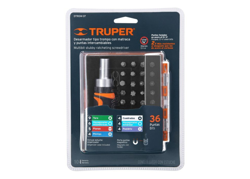 Terkšlinis atsuktuvas su antgaliais, 36 vnt. Truper® 1 / 2