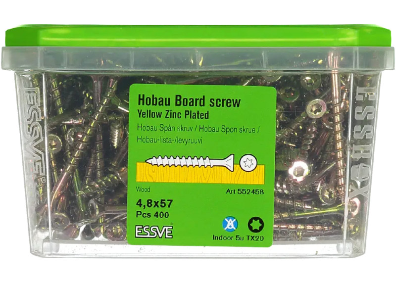 Sraigtai storo kartono ir plokščių tvirtinimui prie medinio profilio, Ø4,8mm, geltono chromavimo, Essve