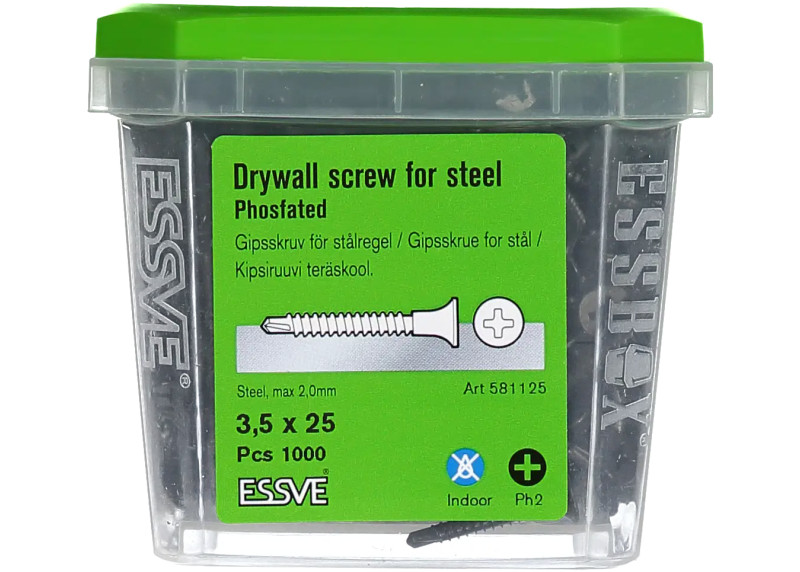 Savisriegiai ESSVE gipsas metalas, su grąžteliu, fosfatuoti, 3,5mm