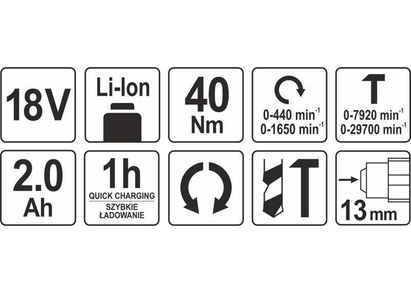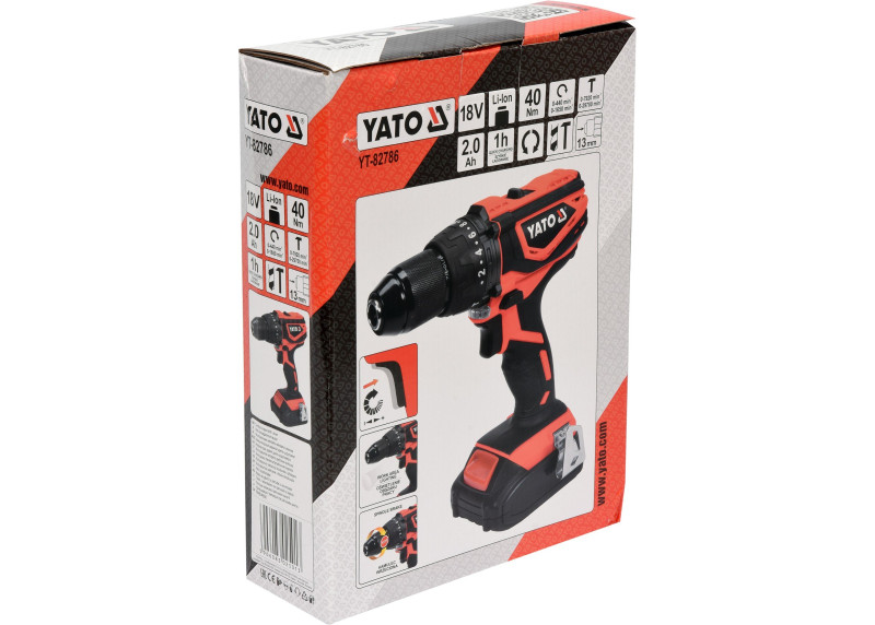 Gręžtuvas suderinamas su visa Yato 18V sistema, todėl galima naudoti ir didesnės talpos baterijas (2.0, 3.0 arba 4.0 Ah).