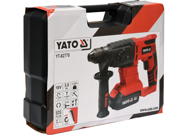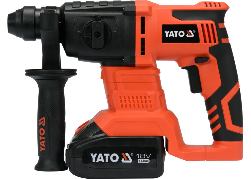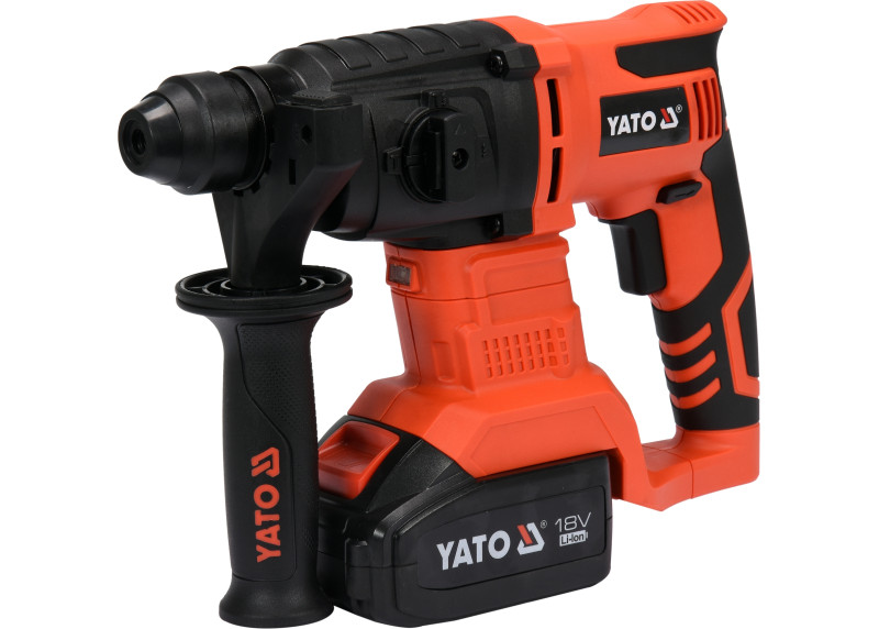 Kompaktiškas Yato 18V akumuliatorinis perforatorius su SDS+ sistema, skirtas gręžimui ir kalimui. Komplekte 3.0Ah baterija.