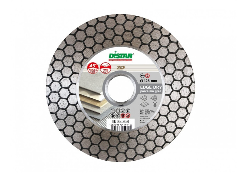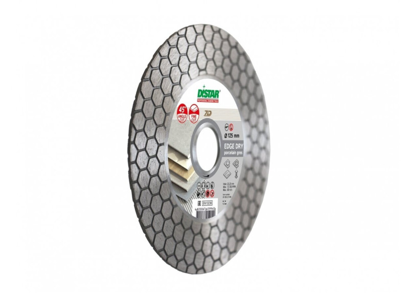 Distar EDGE DRY deimantinis diskas sukurtas profesionaliam apdailos darbų atlikimui, kai reikalingas itin tikslus pjovimas be vandens. Diskas leidžia pasiekti švarius pjūvius ir kokybiškai apdirbti plytelių kraštus, užtikrinant estetišką galutinį rezultatą.