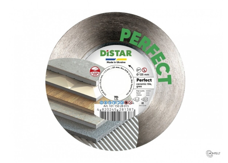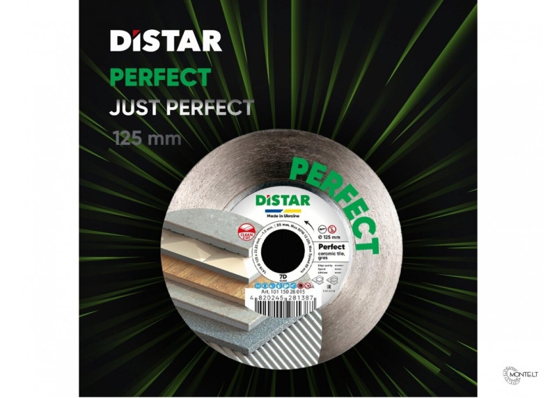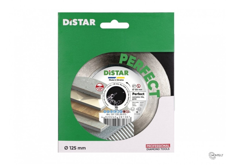 „Distar Perfect“ diskas sukurtas kaip patvaresnė ir universalesnė alternatyva itin ploniems švaraus pjovimo diskams. Didesnis deimantinio sluoksnio storis leidžia dirbti saugiau ir stabiliau, išlaikant aukštą pjūvio kokybę net intensyvaus darbo metu.