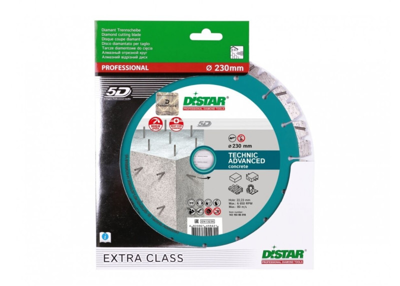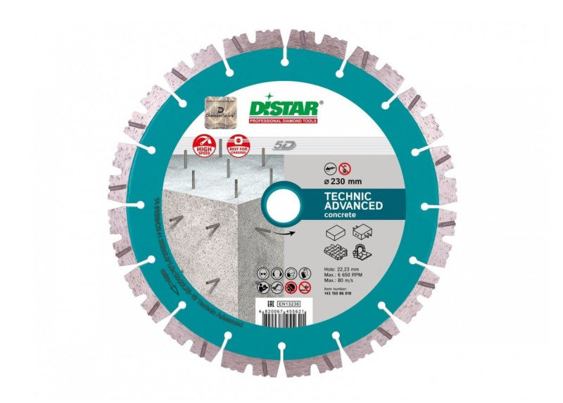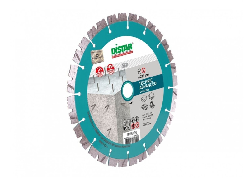 Universalus deimantinis diskas betonui ir armuotam betonui pjauti, tinkamas sausam ir šlapiam pjovimui, 230 mm.