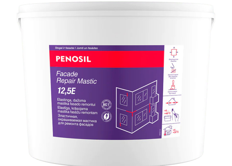 Plasto-elastinis silikonizuotas akrilinis hermetikas - mastika, skirta fasado įtrūkimų ir siūlių remontui. Puikiai tinka greitiems fasado remonto darbams prieš dažymą.