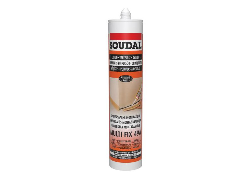Soudal 49A universalūs montažiniai klijai sukurti profesionaliam naudojimui. Prieš pradedant darbus rekomenduojama atlikti išankstinį bandymą su konkrečiu pagrindu. Gamintojas pasilieka teisę keisti produkto savybes be išankstinio įspėjimo.