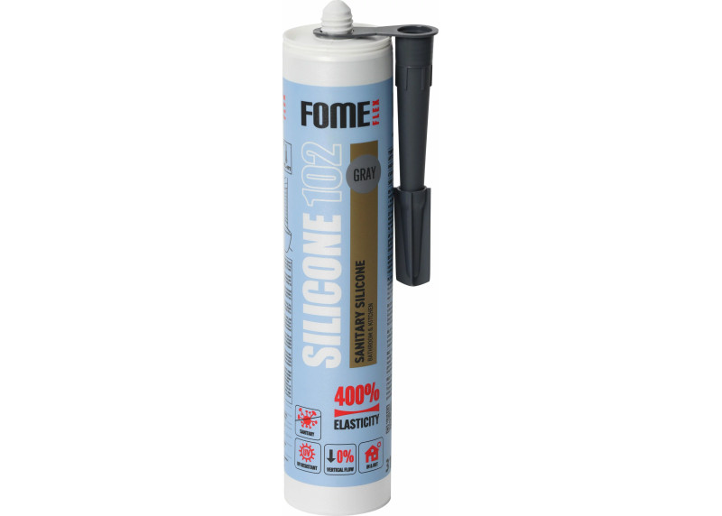 FOME FLEX SANITARY SILICONE 102 yra vienkomponentis, aukštos kokybės pilkas silikoninis hermetikas, sukurtas sanitarinėms patalpoms ir stiklinimo darbams. Hermetikas atsparus vandeniui ir pelėsiui, labai elastingas, todėl puikiai tinka judančioms ir nejudančioms siūlėms: vonių, plautuvių, praustuvų, dušo kabinų, baseinų, vandentiekio ir drenažo siūlėms, taip pat PVC vamzdžių jungtims.