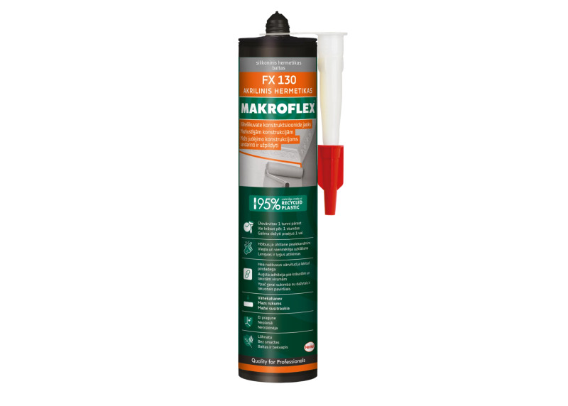 Sandariklio perteklių pašalinkite naudodami Makroflex Silikon Tool arba bet kurį kitą pasirinktą silikoninį įrankį. Jei jungiamosioms siūlės kraštams apsaugoti naudojote lipnią juostą, dabar ją reikia nuimti. Kad pasiekti geriausią rezultatą, apipurkškite jungiamąją siūlę švelniu indų ploviklio (muilo) tirpalu ir vėl išlyginkite silikoniniu įrankiu.