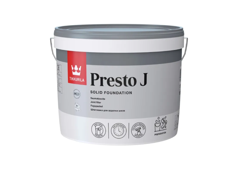 Siūlių glaistui išdžiūvus išlyginkite paviršių 1–2 sluoksniais glaisto „Presto LF+“ . Glaistui išdžiūvus paviršių nušlifuokite šlifavimo