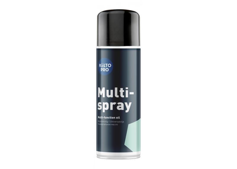Kiilto Multispray – daugiafunkcinė tepimo alyva aerozolio pavidalu, skirta įvairių mechaninių dalių priežiūrai ir apsaugai. Produktas efektyviai sutepa varžtus, veržles, reguliavimo įtaisus, spynas, vyrius, šarnyrus, jungtis, virves bei kitus judančius ar sujungimo elementus.